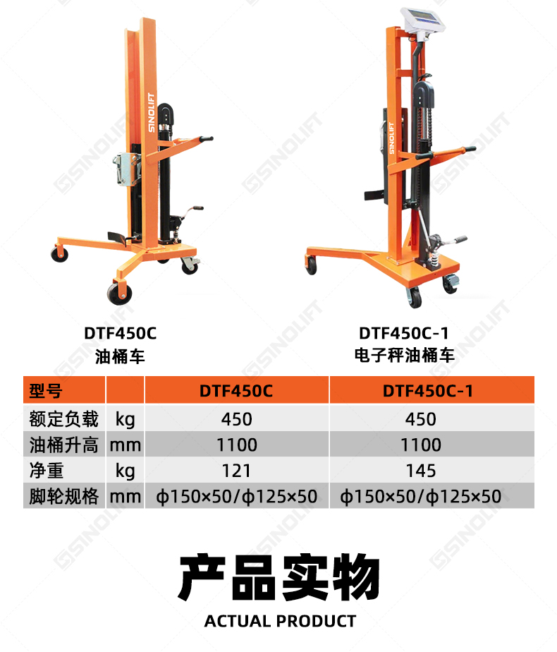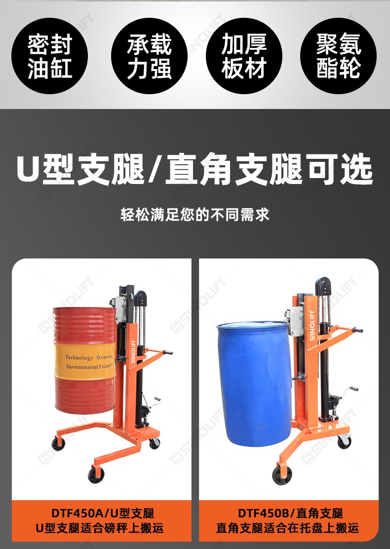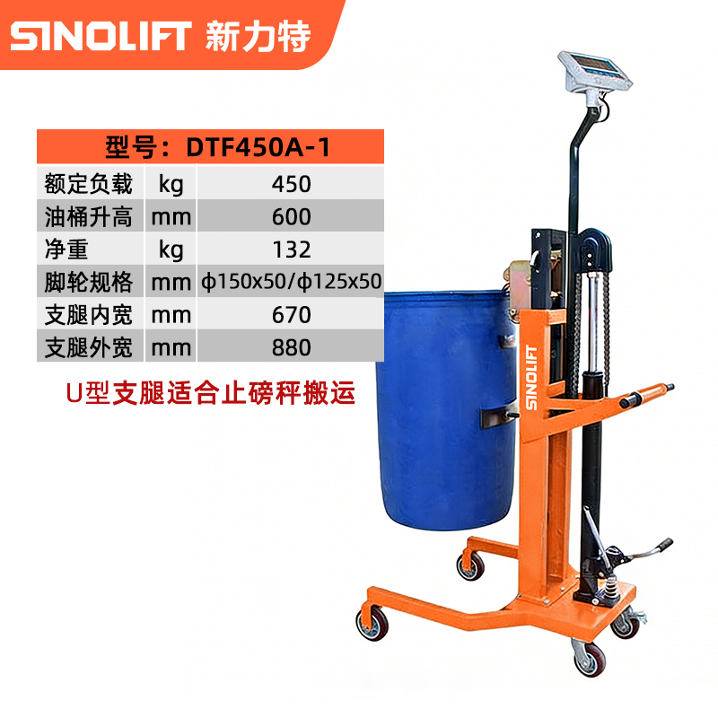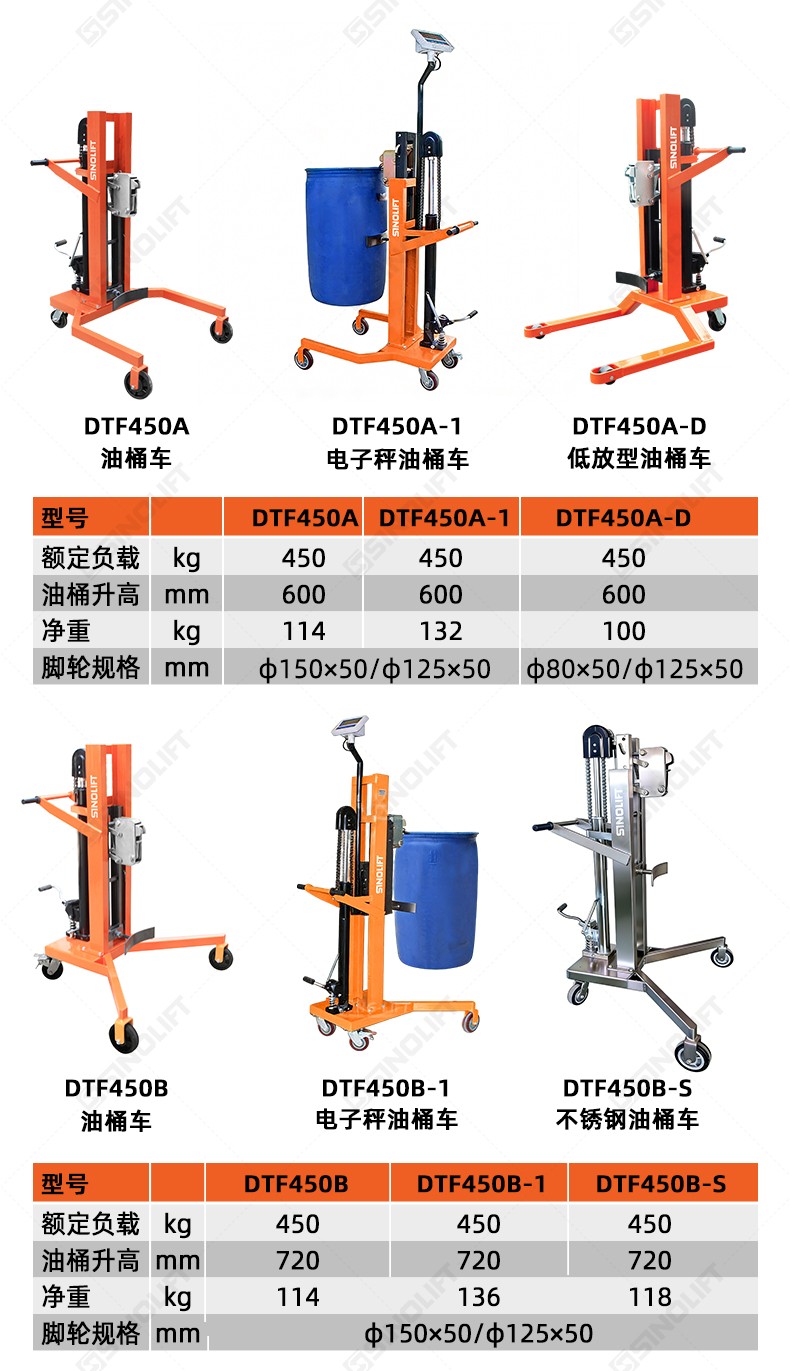 名称:DTF450 A B C D 手动重型液压油桶搬运车