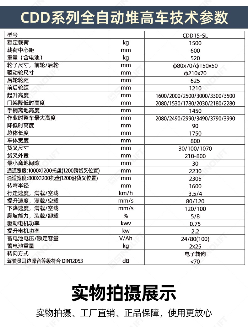 | CDD系列全自动堆高车技术参数 | |||