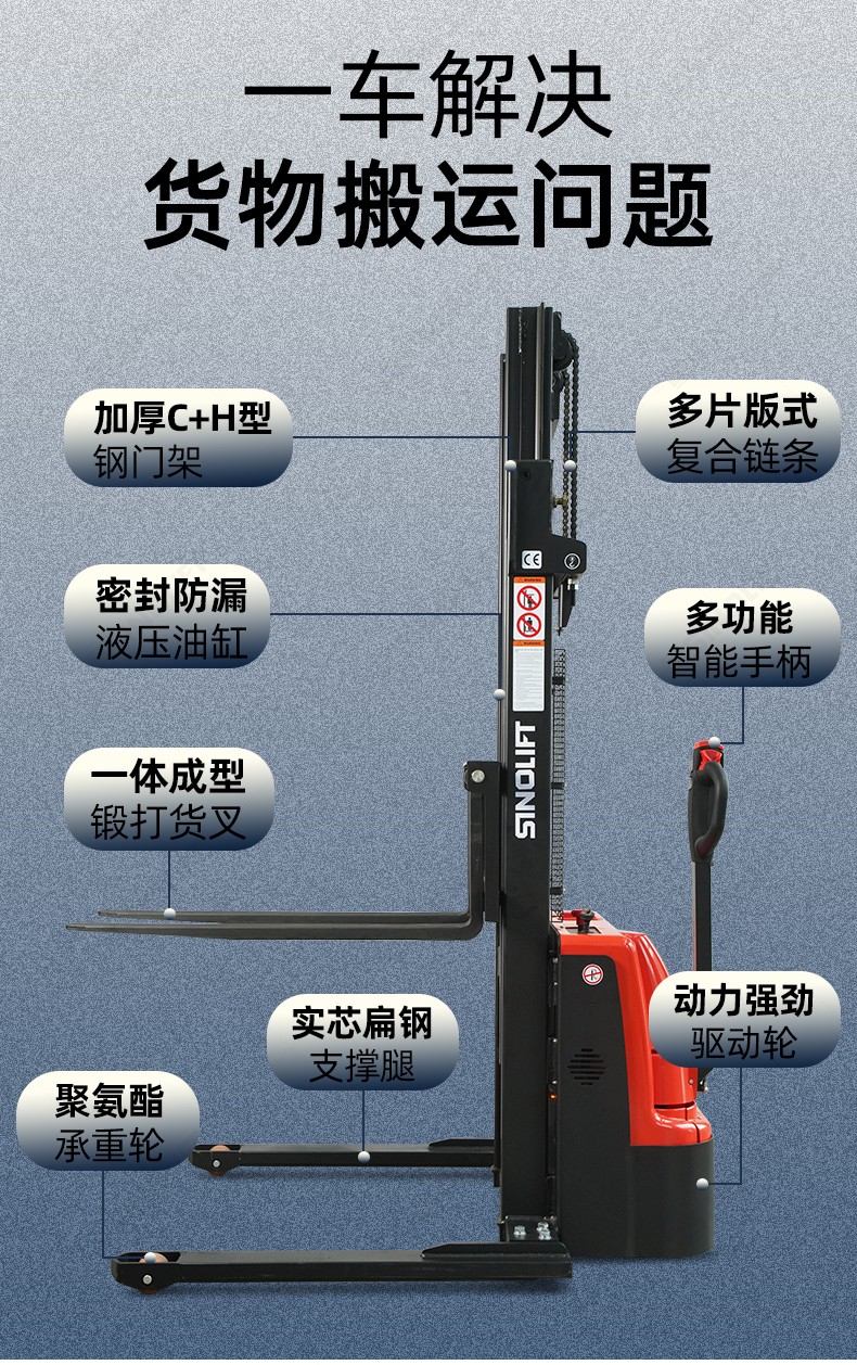 名称:CDD15SL 跨腿全电动托盘堆垛车