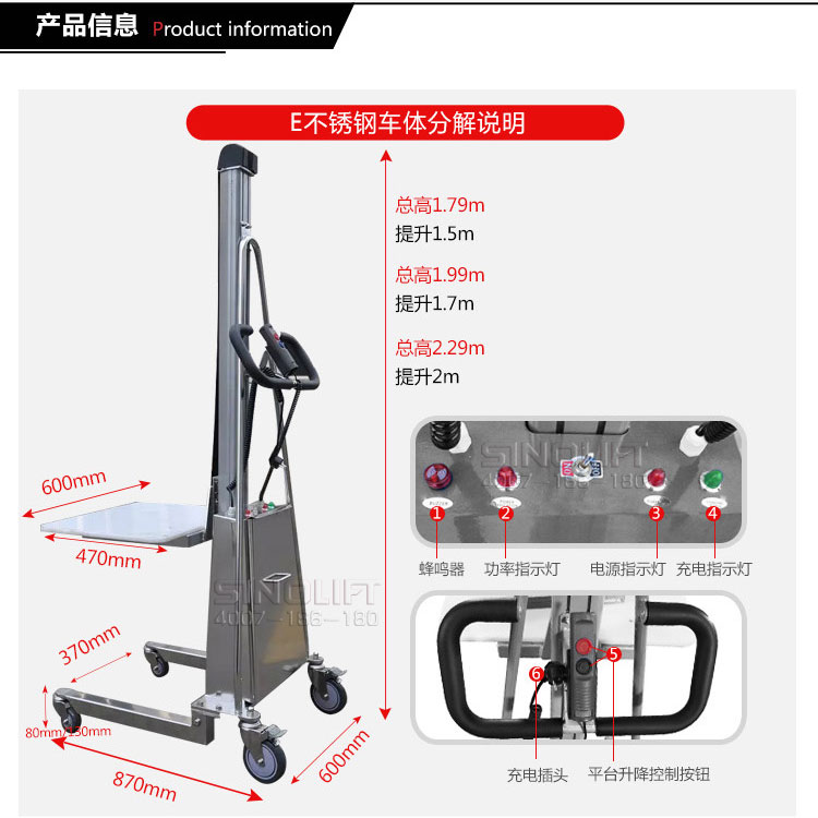 1.平台升降控制器,电动升降平台,操作更省力,只需轻轻调动按钮