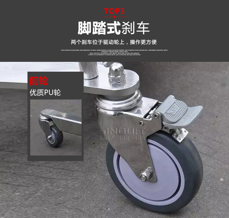 3.脚踏式刹车,可拆卸支腿