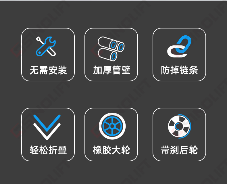 2.折叠支撑腿的独特设计减轻操作者劳动强度;