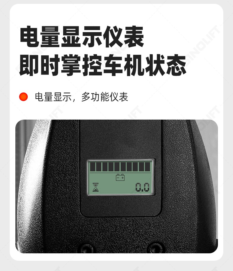 4.多功能电子手柄,集成钥匙开关,直立行走按钮,液晶屏,龟速按钮,操作舒适简单;