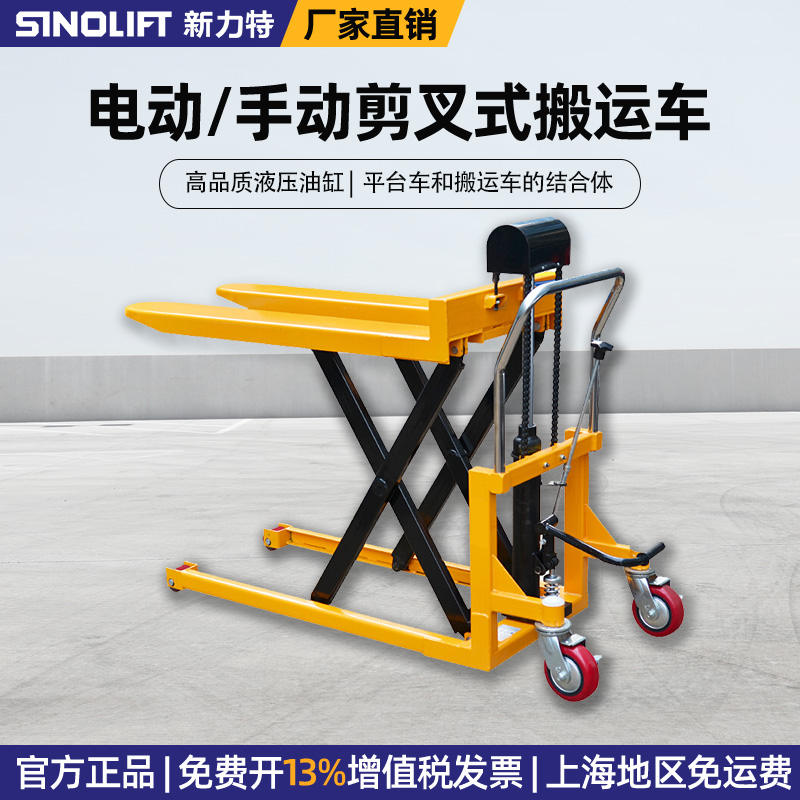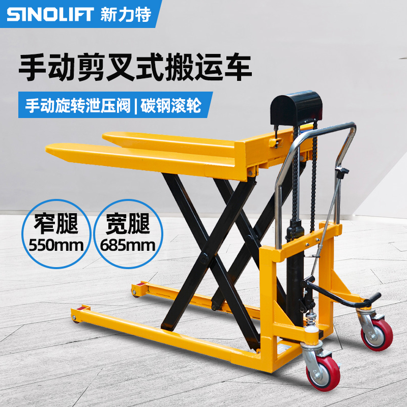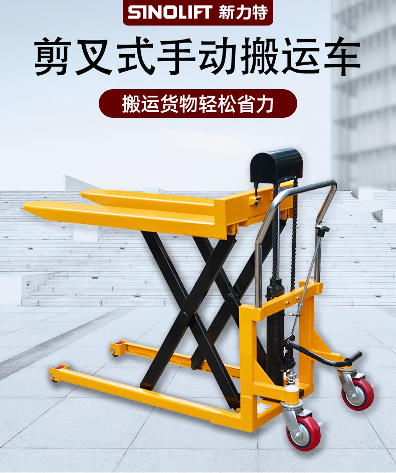 手动剪叉式搬运车,平台车和搬运车的结合体,搬运货物轻松省力