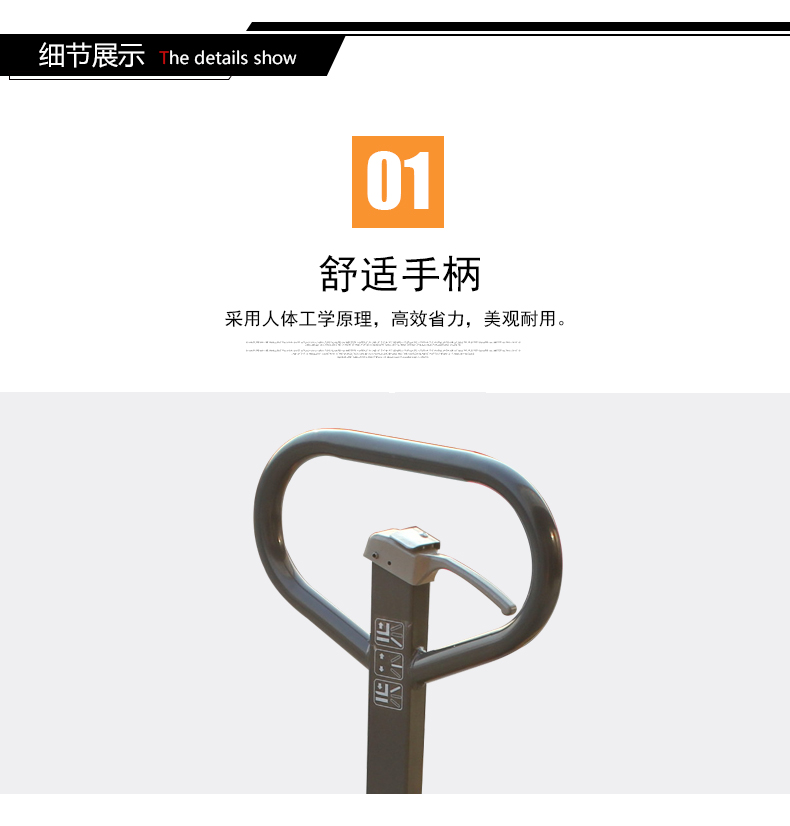 叉车表面采用除尘喷塑处理,具有防腐,防锈等特点。油泵核心部件采用进口油封密