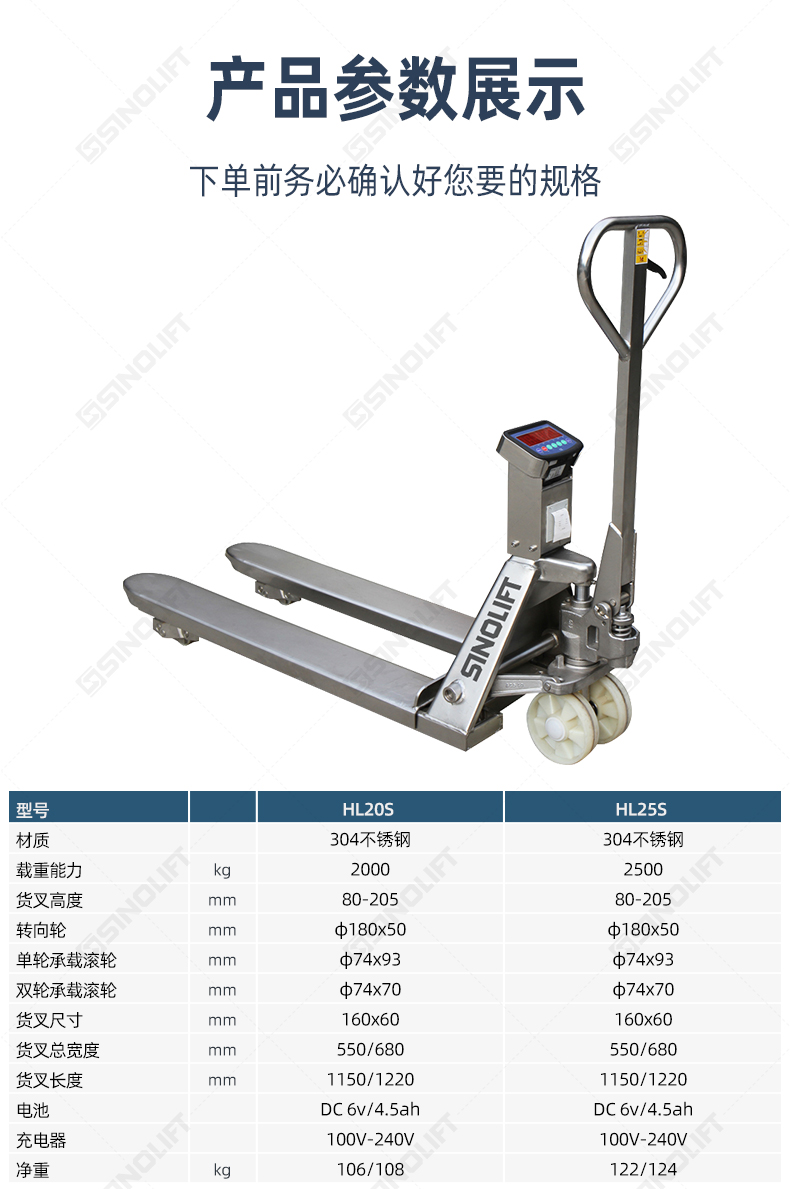 名称:HL20S HL25S 不锈钢带电子秤搬运车