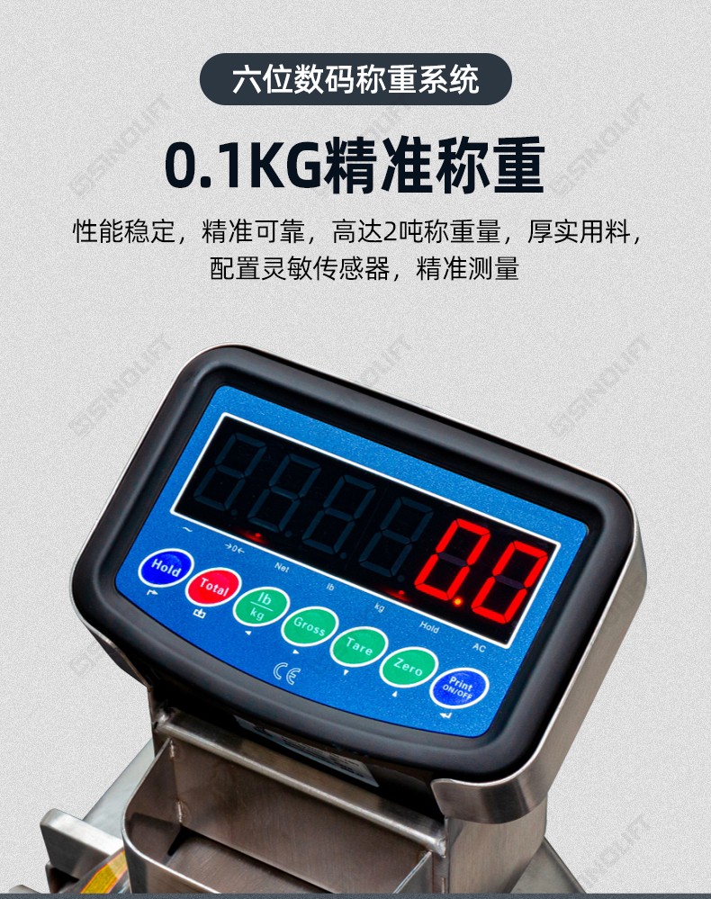 进口传感器、称重仪表,置零、去皮、累计等功能,单位可切换(kg/lb);