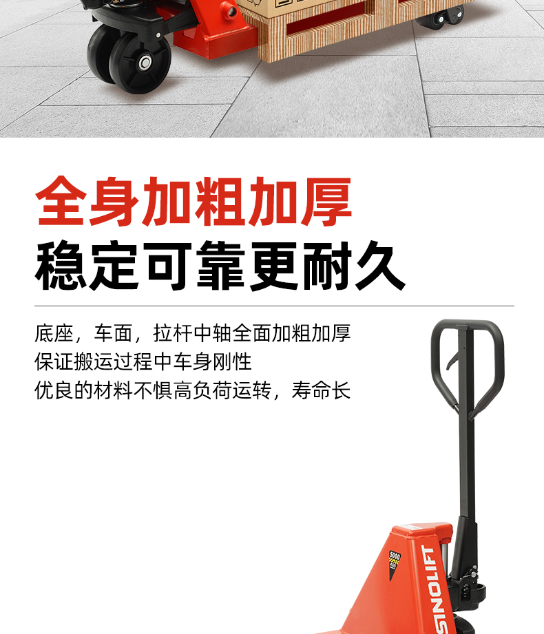 3.辛诺利夫特的重型手动托盘卡车易于使用,只需要很少的培训。