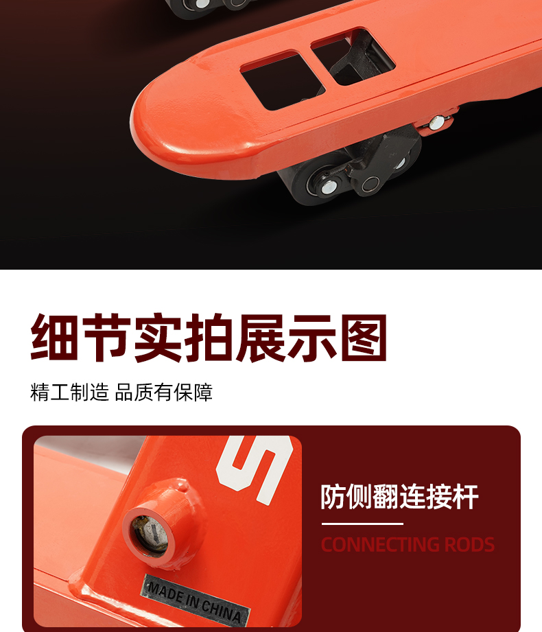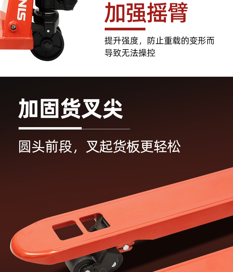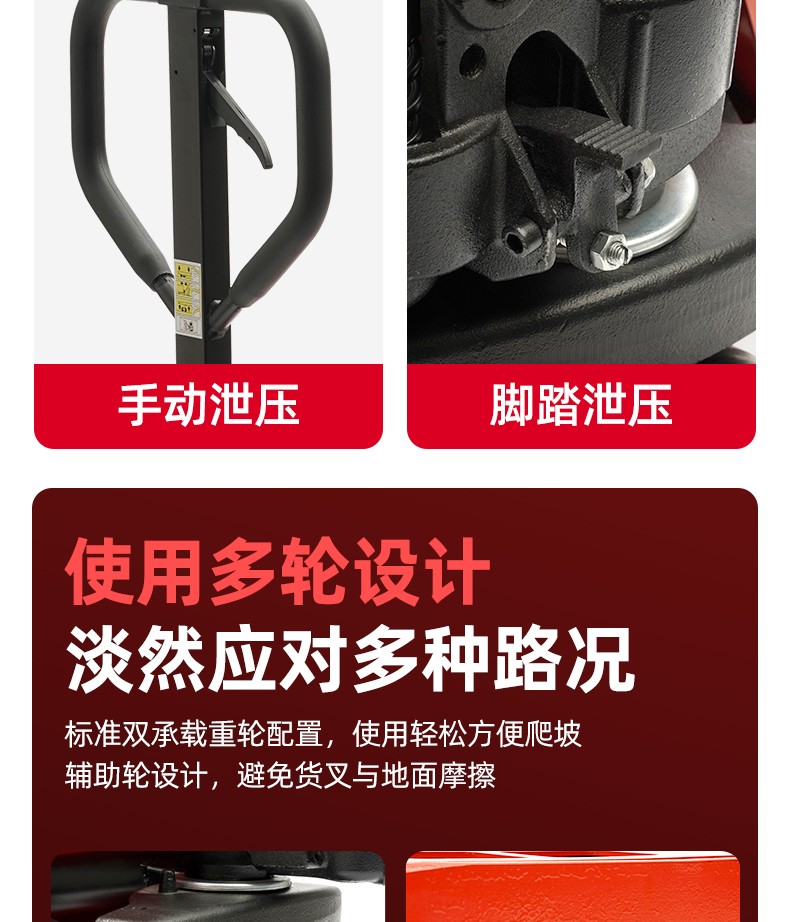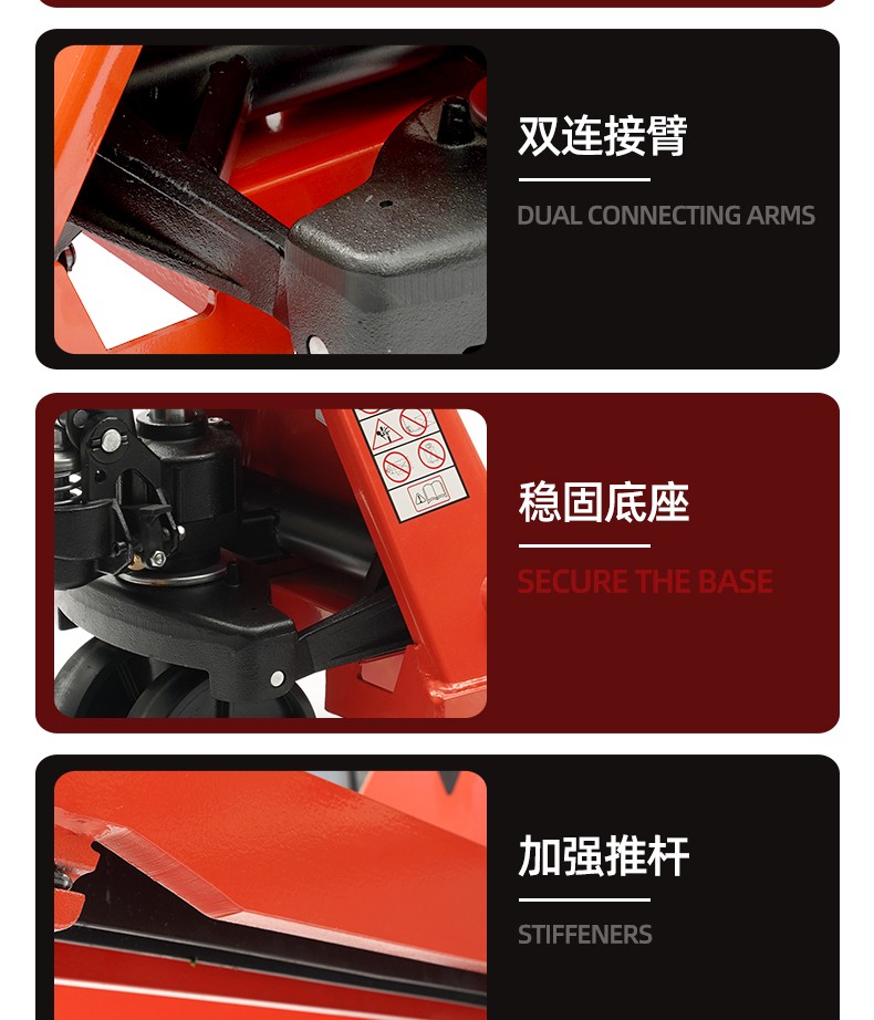 1.重型手动托盘车是一种便于托盘化货物通过地板运输的设备。