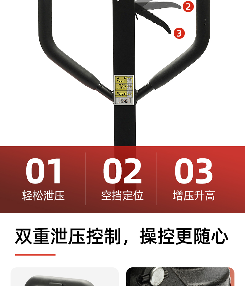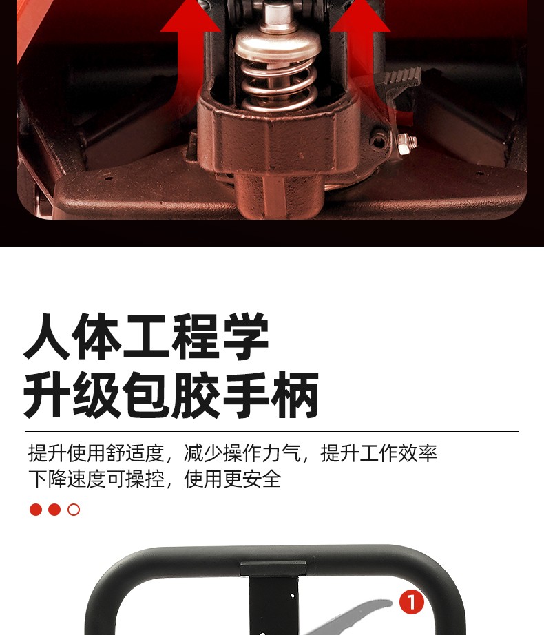 7.轮廓分明的泪滴把手和友好的杠杆提供了操作人员的舒适性和优秀的负载可操作性。