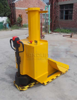 1,弧形托盘,用于承载圆形货物,电动起升电动行走,操作方便省力;