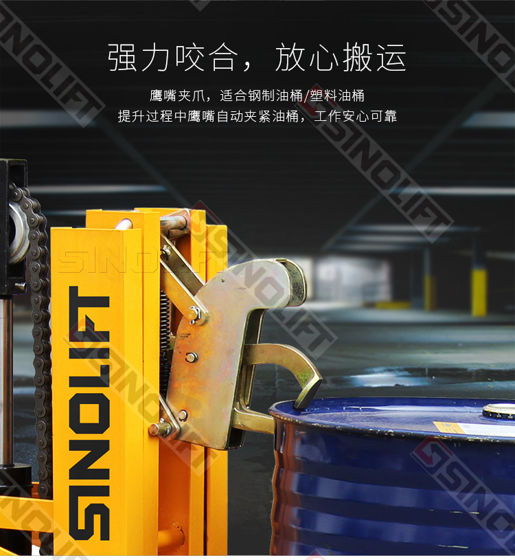 特殊鹰嘴和双鹰嘴,自动快速咬紧油桶,