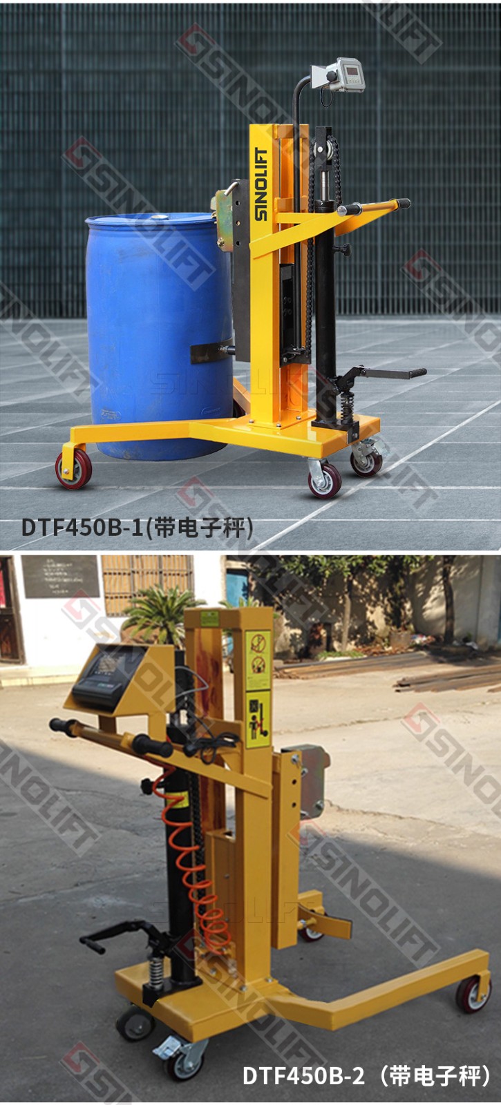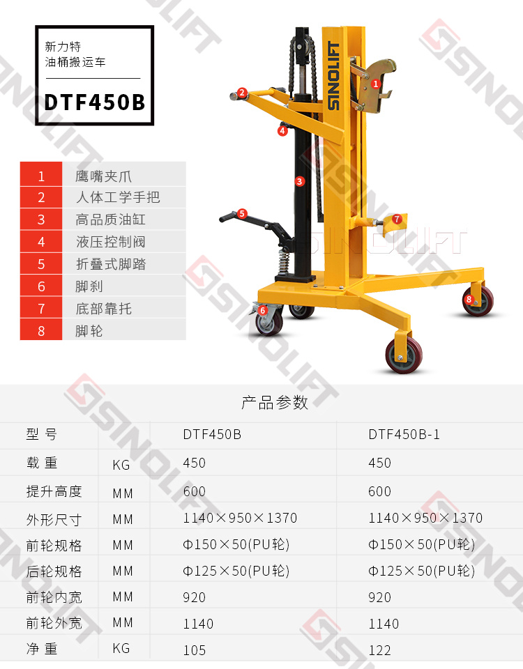 名称:DTF450-1 可申缩支腿手动液压油桶搬运车