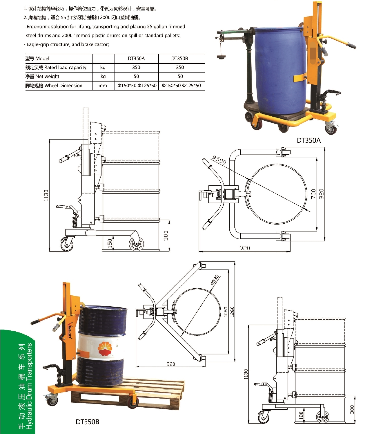 名称:DT350A DT350B DT350C 手动液压油桶搬运车