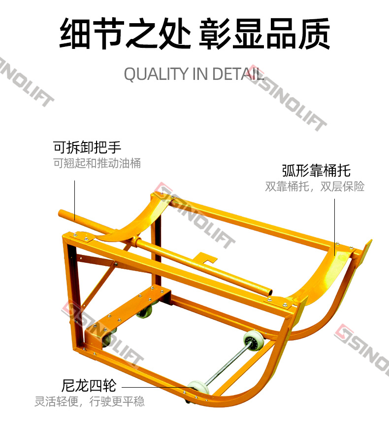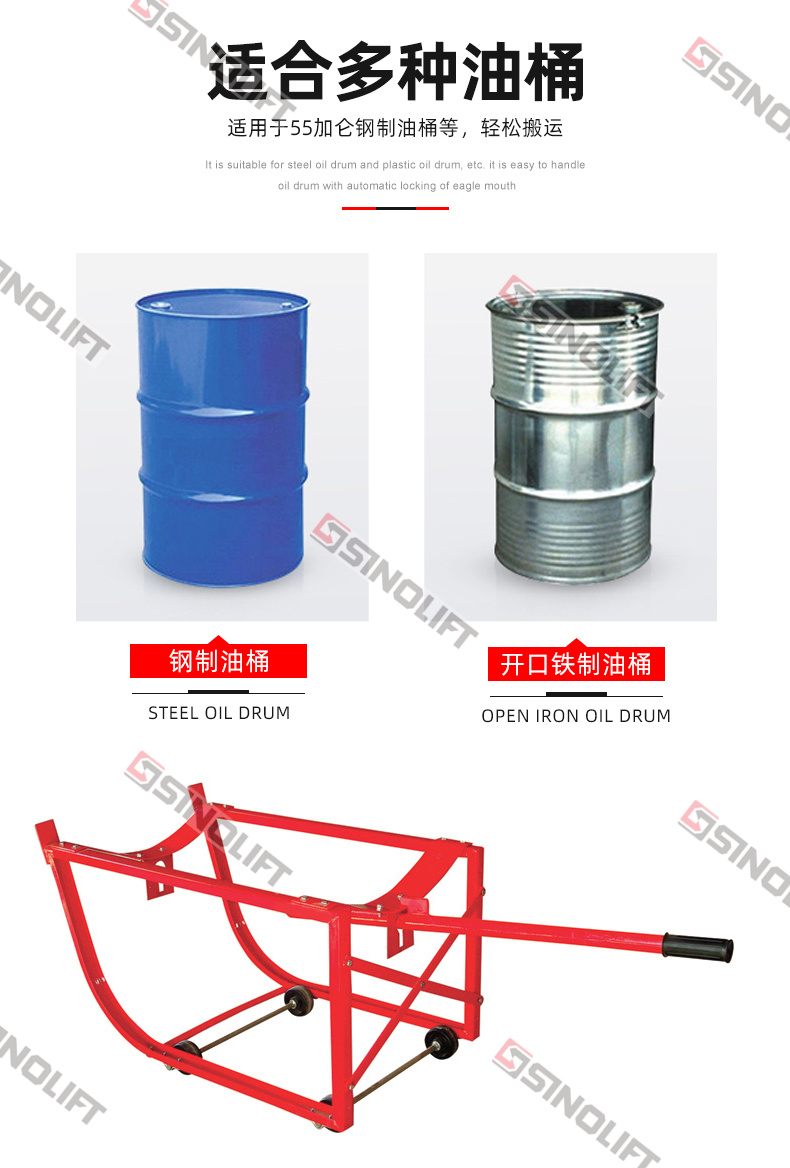 1.可拆卸把手,可翘起和推动油桶。