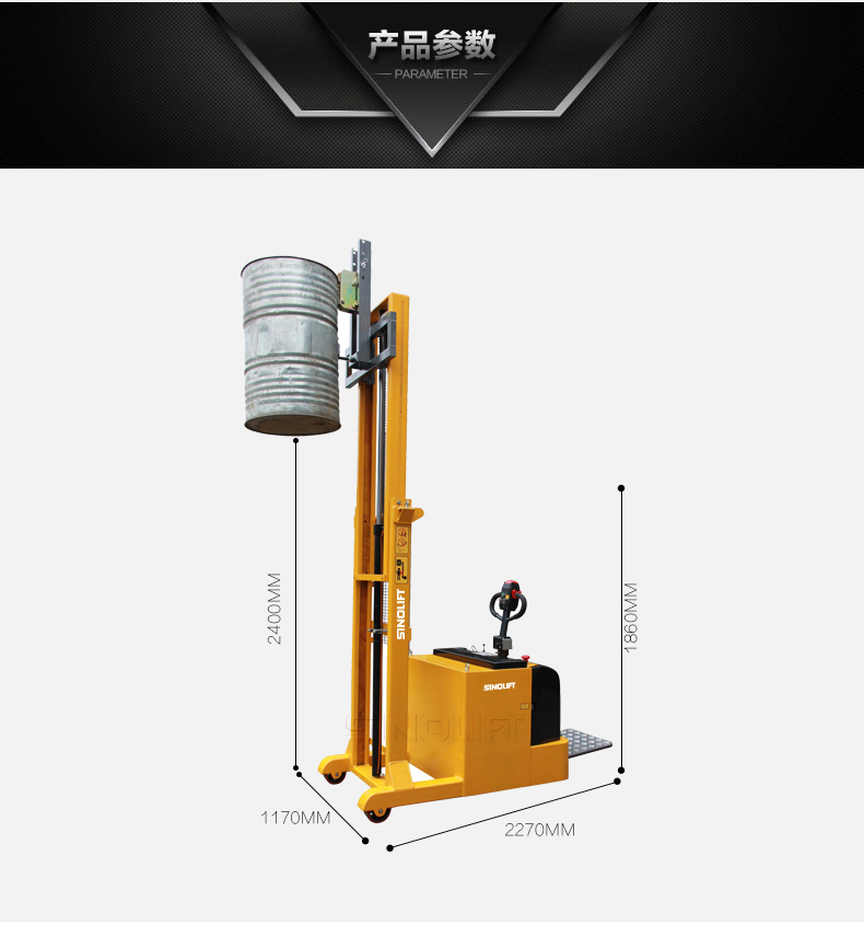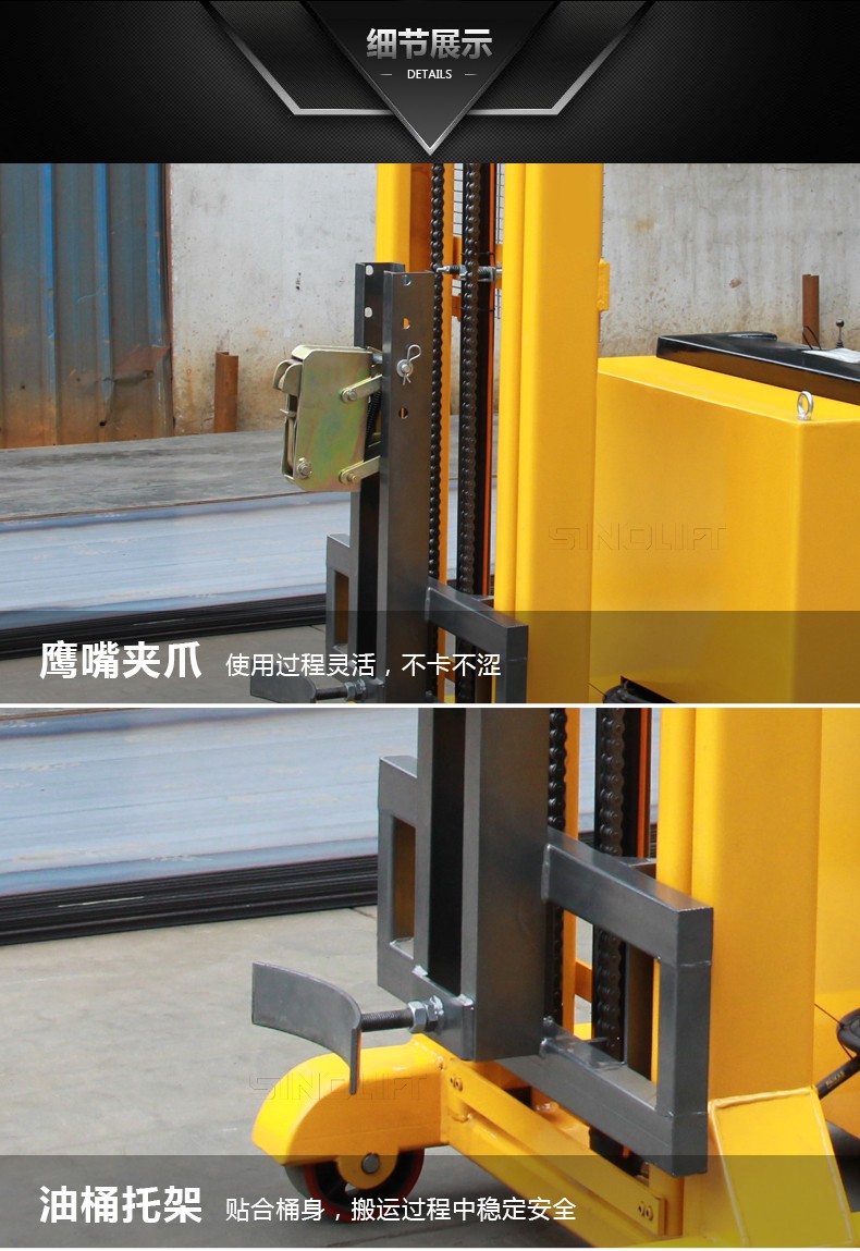 3.适合钢制油桶和塑料油桶的搬运堆高。