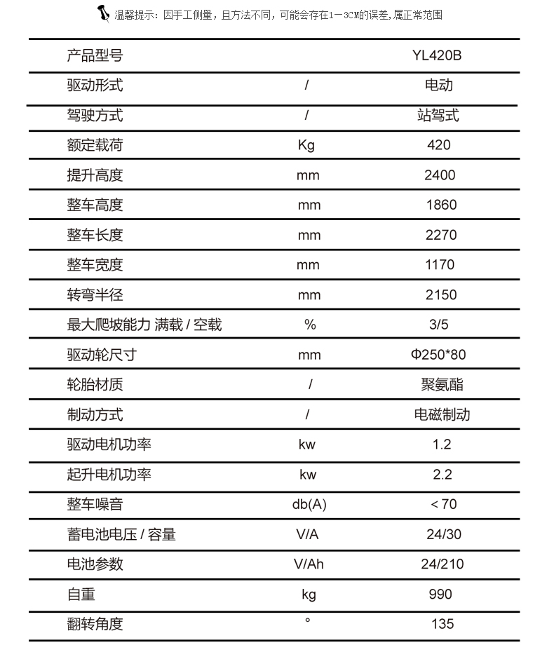 | 驱动轮尺寸 | mm | Φ250*80 |