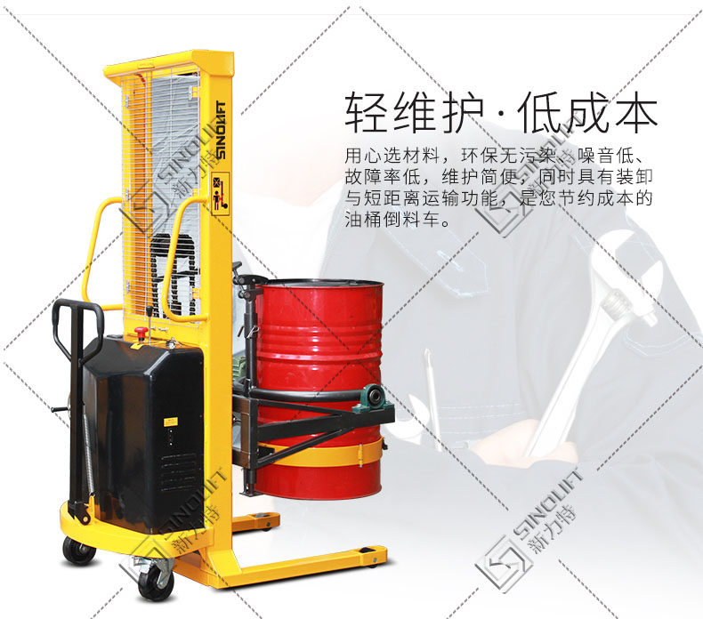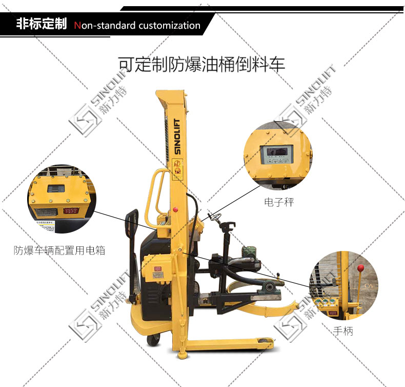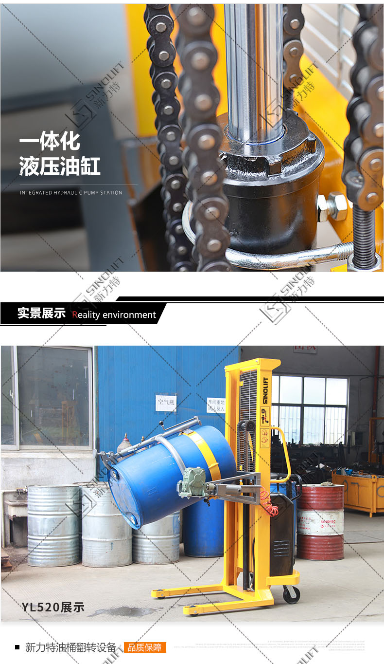 3、抱箍式与叨扣式一体,适合钢制油桶和塑料桶电动翻转