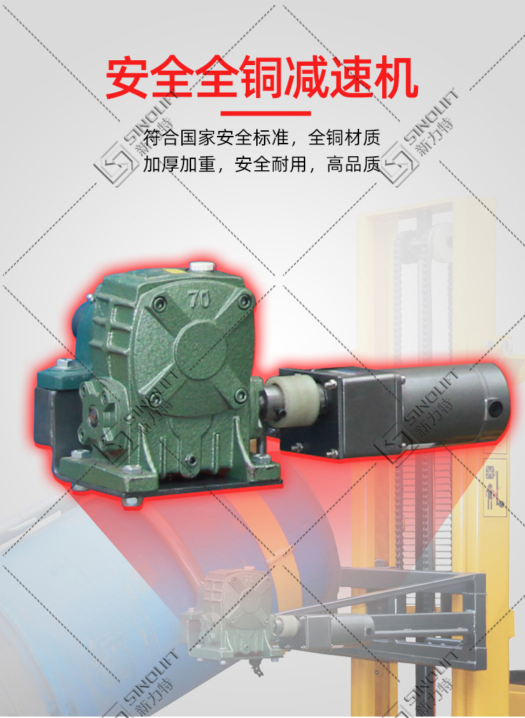 2.适用适于钢桶类的搬运、提升、装卸作业,该车采用进口电动车专用行走控制系统,行走稳定,具有轻便、灵活的特性,可单人操作。
