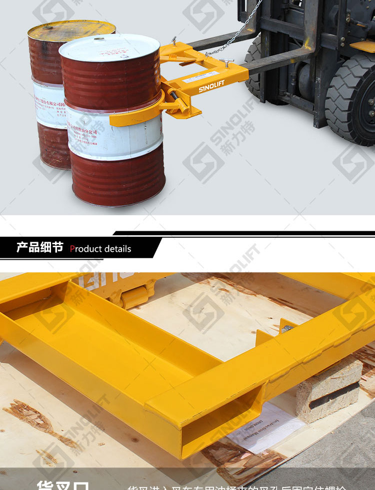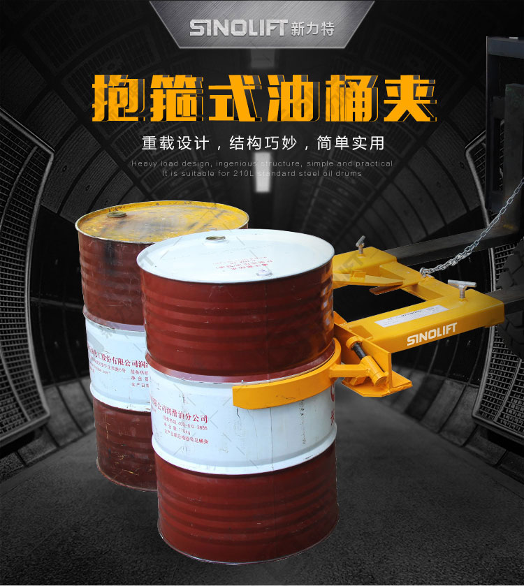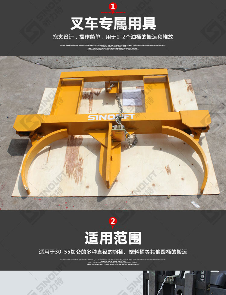 1.叉车专用属具,用于油桶搬运、堆放。