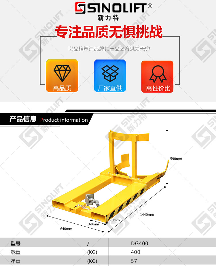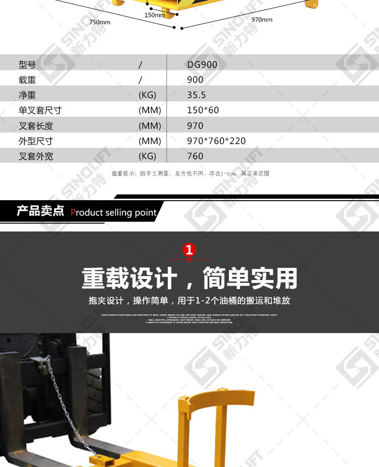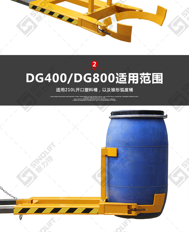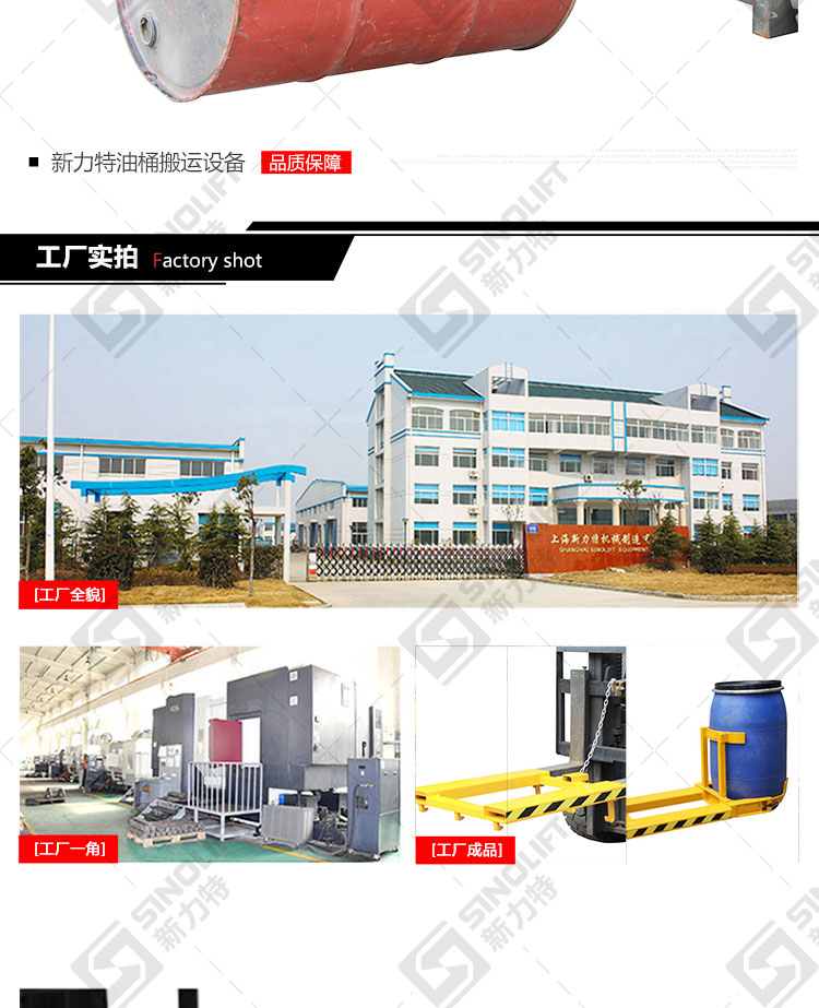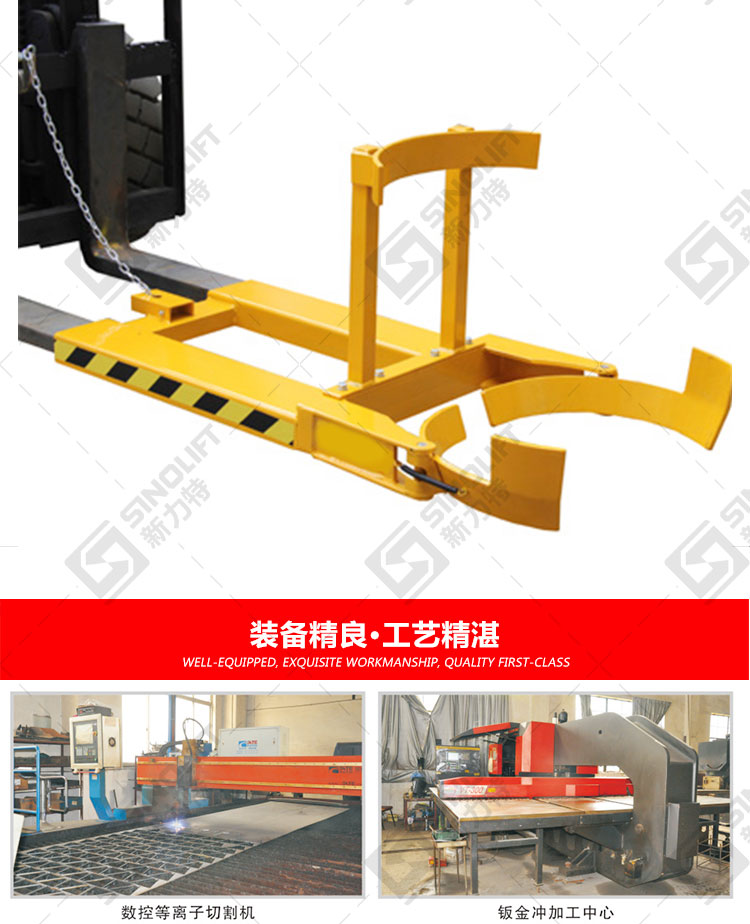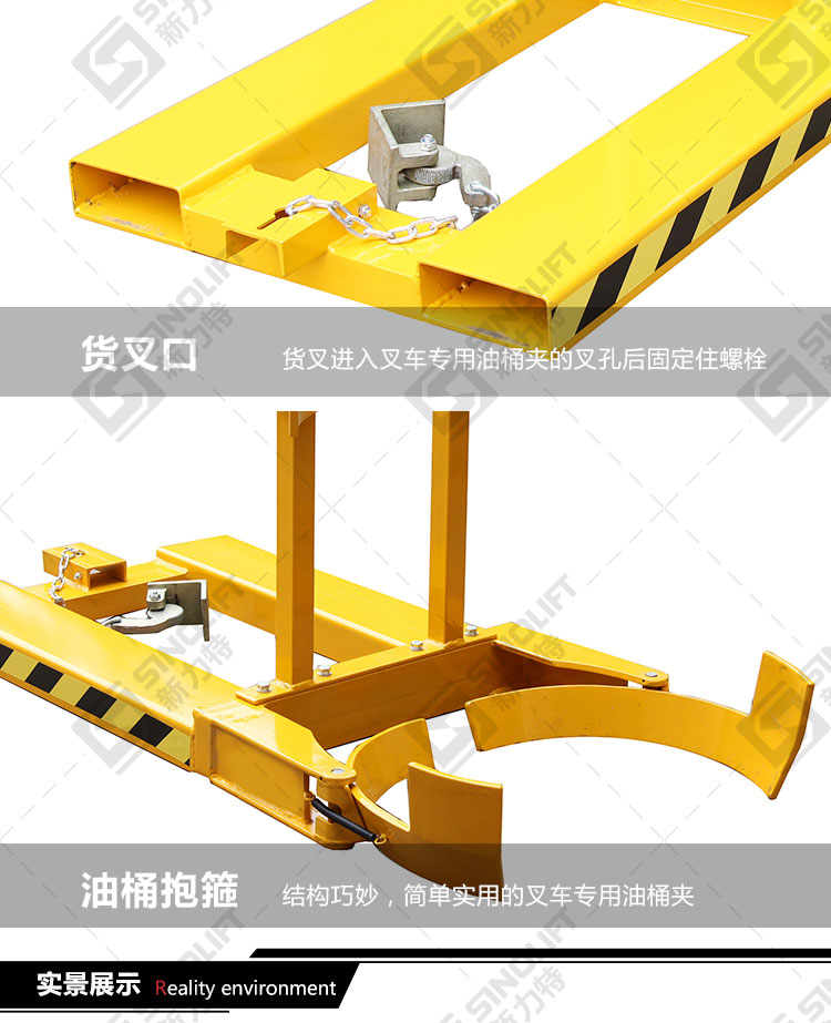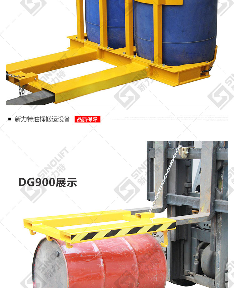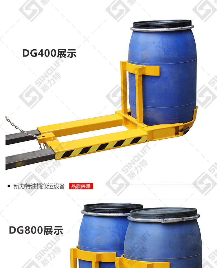 2.广泛用于配合叉车进行油桶的搬运及堆放。
