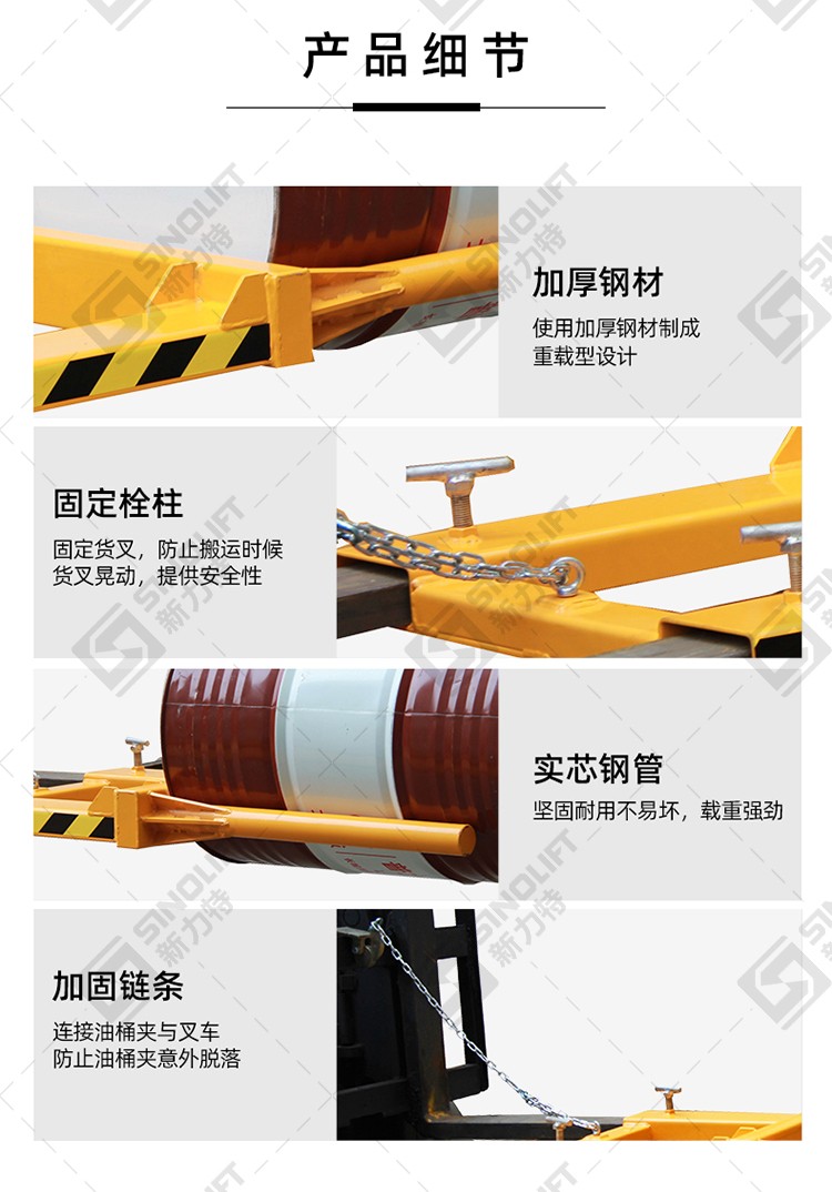 1、叉车专用油桶搬运夹 ,叉车专用属具,用于油桶搬运、堆放。