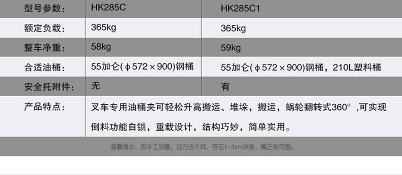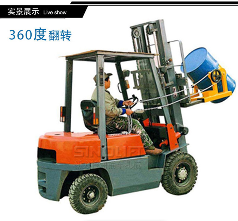 1.HK系列叉车专用油桶夹可轻松升高,搬运,360°翻转,倾倒满载油桶