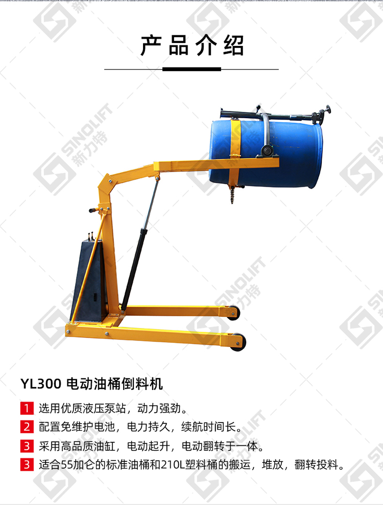 4、适合55加仑的标准油桶和210L塑料桶的搬运,堆放,翻转投料