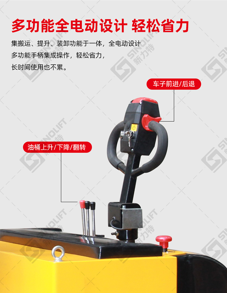 2适用适于钢桶类的搬运、提升、装卸作业,该车采用进口电动车专用行走控制系统,行走稳定,具有轻便、灵活的特性,可单人操作。