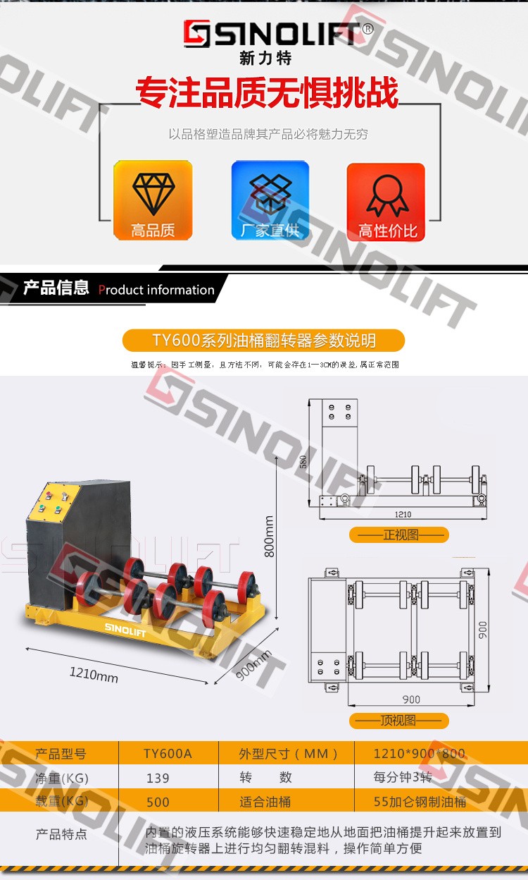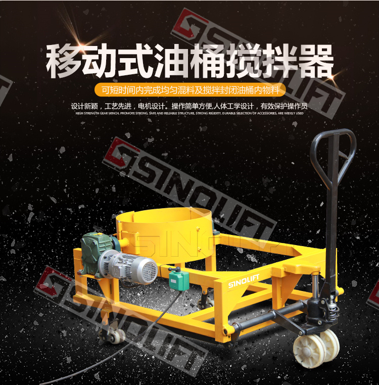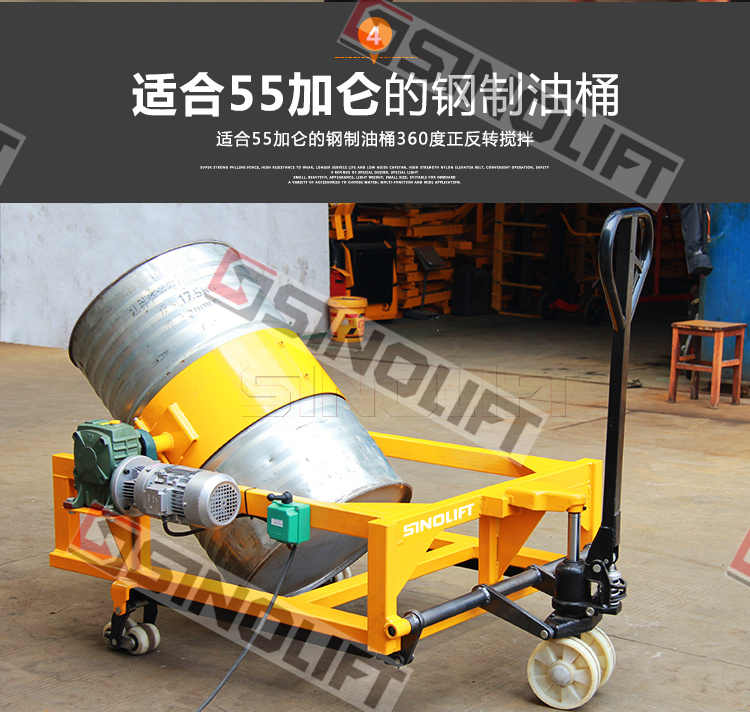 可短时间内完成均匀混料及搅拌封闭油桶内物料的功能,操作简单方便