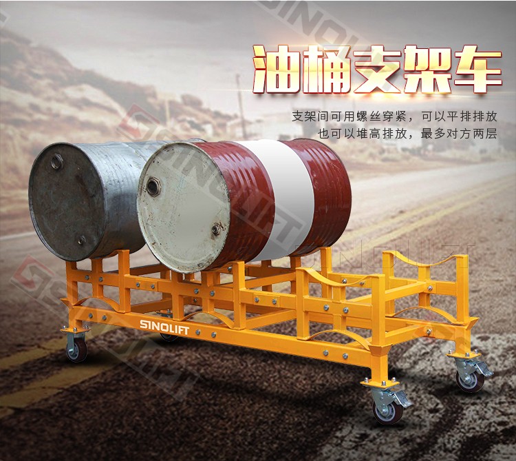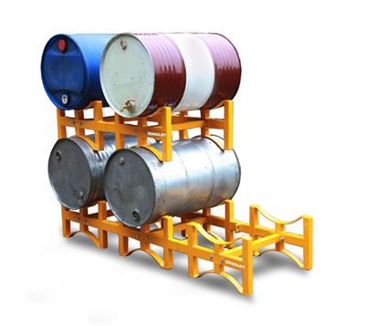 1.该油桶支架间用螺丝进行穿紧连接,可平排放,亦可堆高排放。