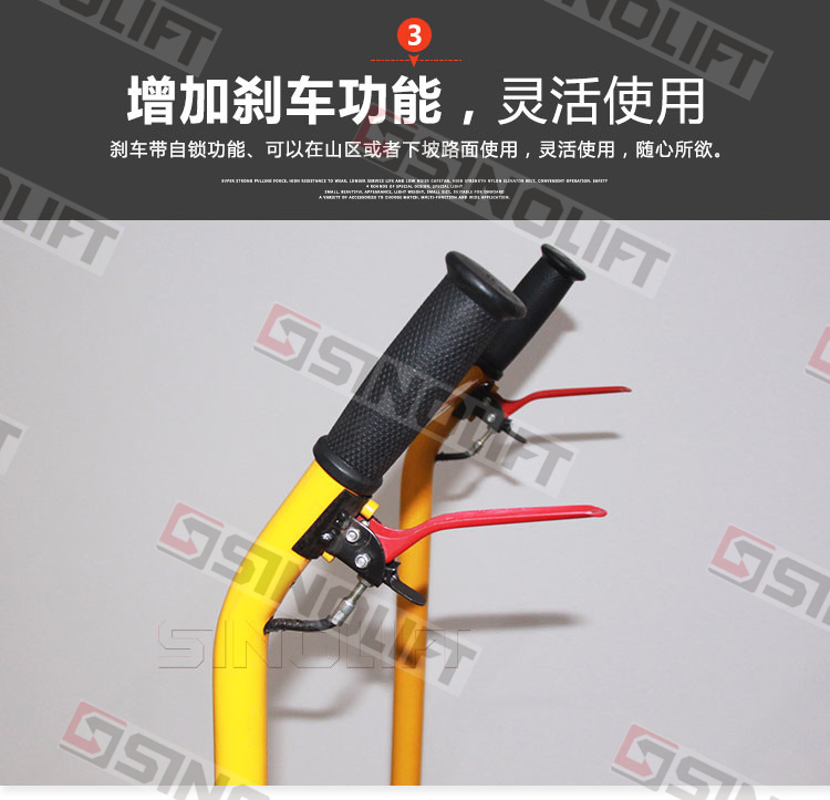 8、增加刹车功能,可以在山区或者下坡路面使用,刹车带自锁功能、灵活使用,随心所欲。