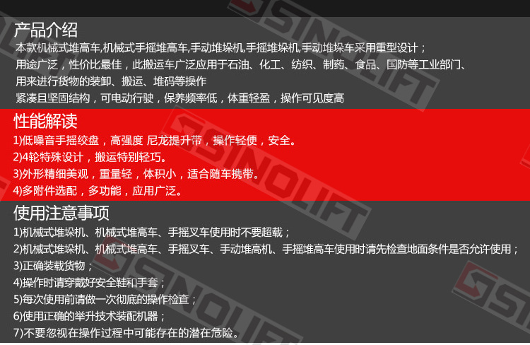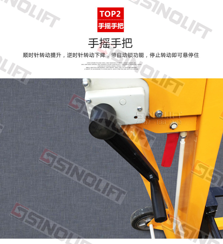 1.低噪音手摇绞盘,高强度尼龙提升带,操作轻便、安全。