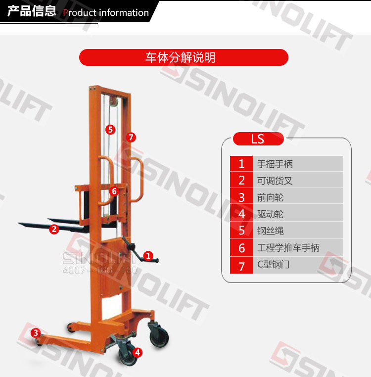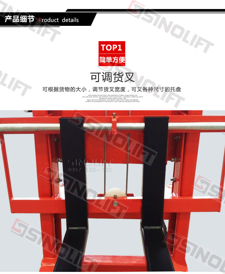 4.货叉宽度可调范围:160毫米-690毫米。