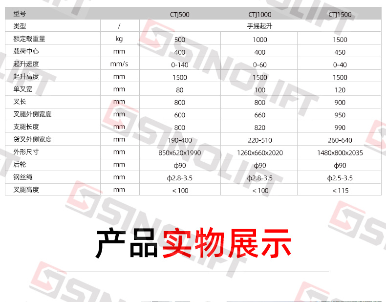 名称:CTJ500 CTJ1000 CTJ1500 手摇堆高车