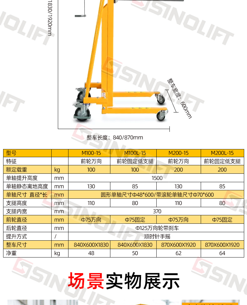| 额定载重 | kg | 100 | 100 | 200 | 200 |