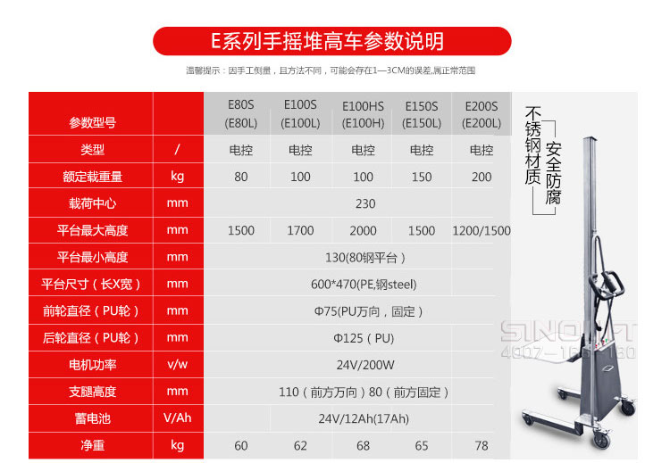 | 额定载量 | kg | 80 | 100 | 100 | 150 | 200 |