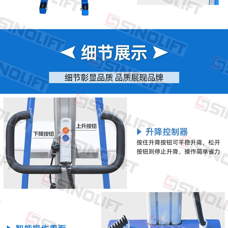 2、按住升降按钮可平稳升降,松开按钮则停止升降,操作简单省力