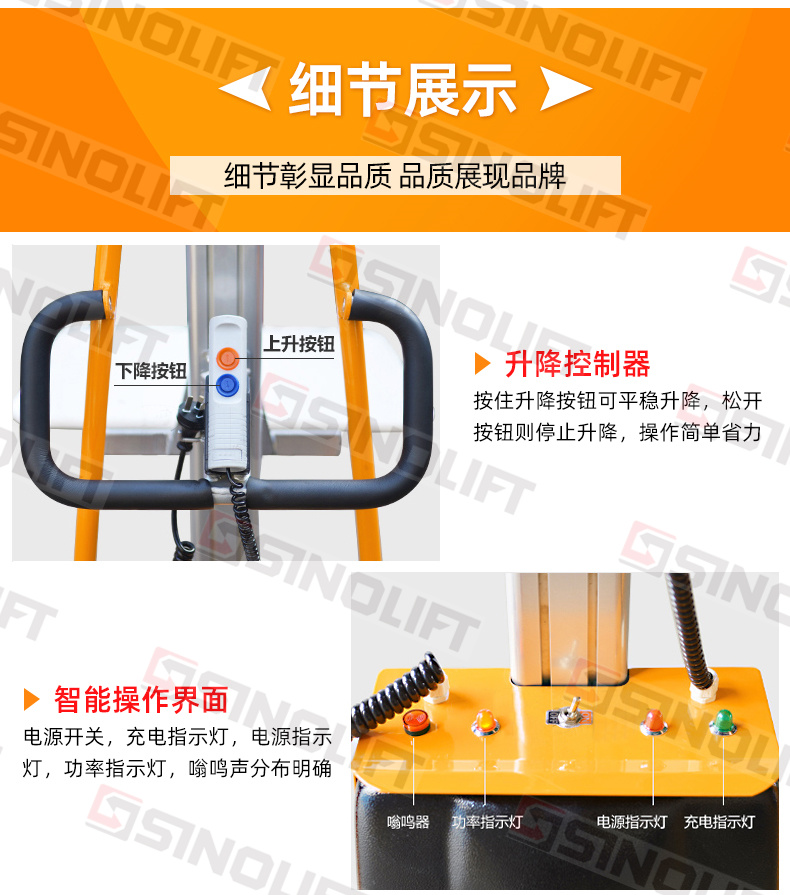 4、按住升降按钮可平稳升降,松开按钮则停止升降,操作简单省力