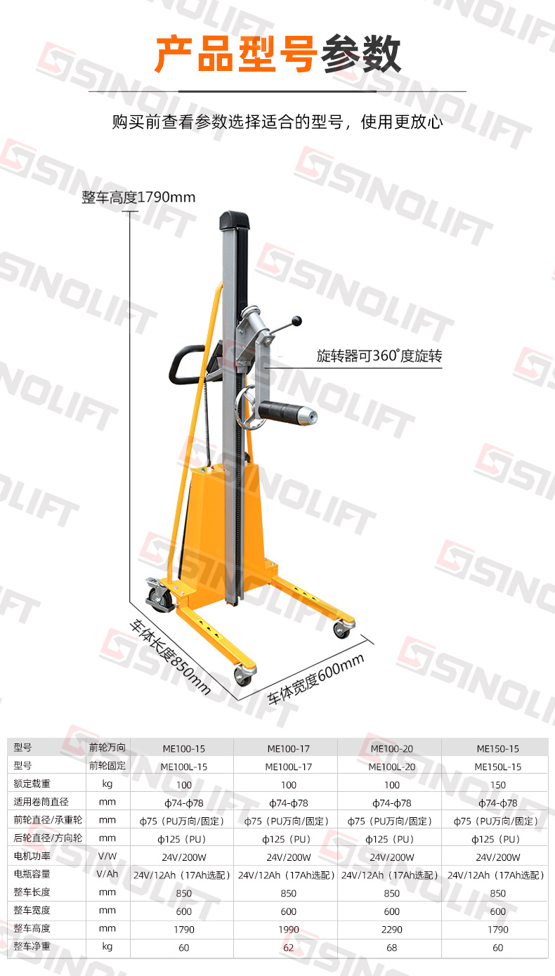 3、旋转器360度旋转,操作灵活。电动升降,安全可靠