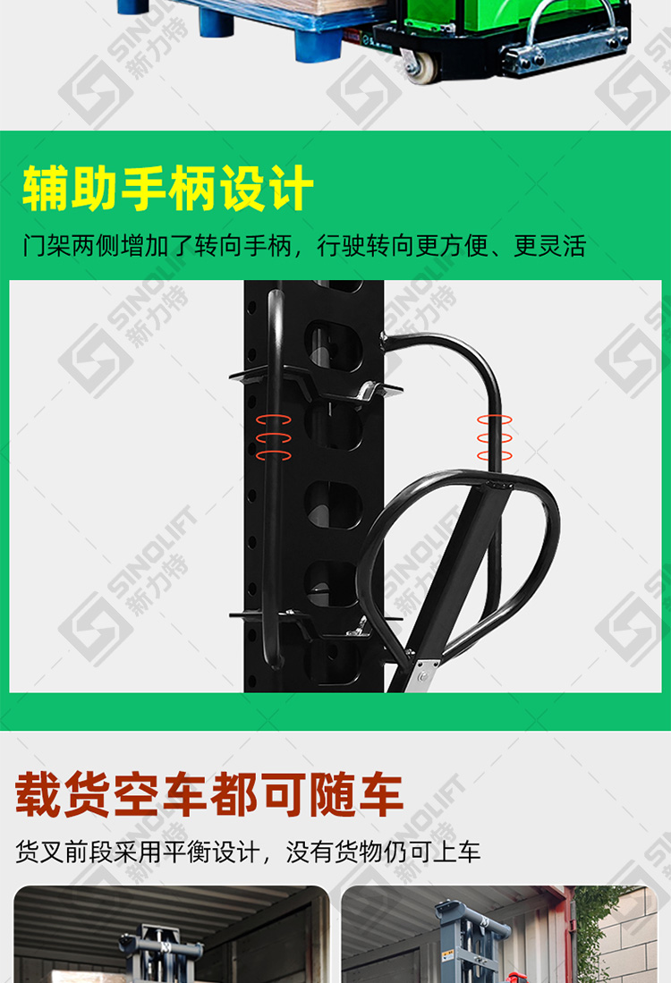 4.货叉前段采用平衡设计,没有货物仍然可以上车。