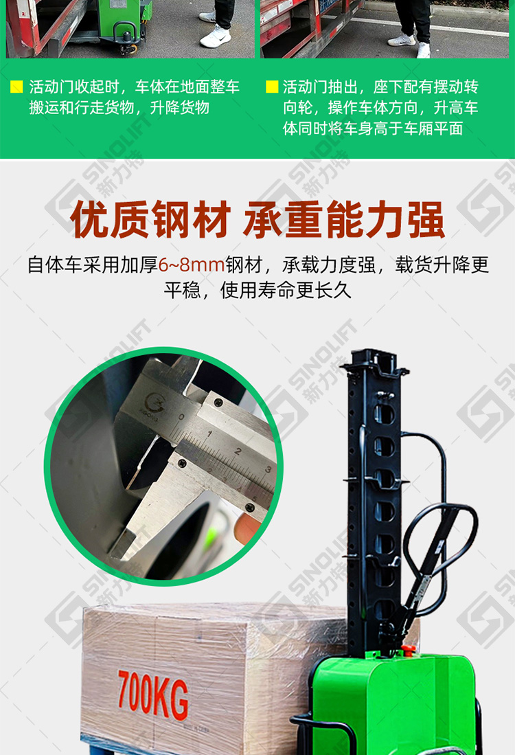 5.一体式加厚配重货叉,装卸货更稳,承载更强