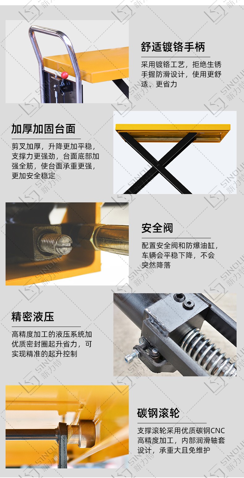 4. 坚固的脚轮与安全车轮保护和刹车两个旋转脚轮,为更大的安全车轮装卸。