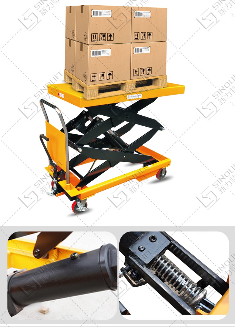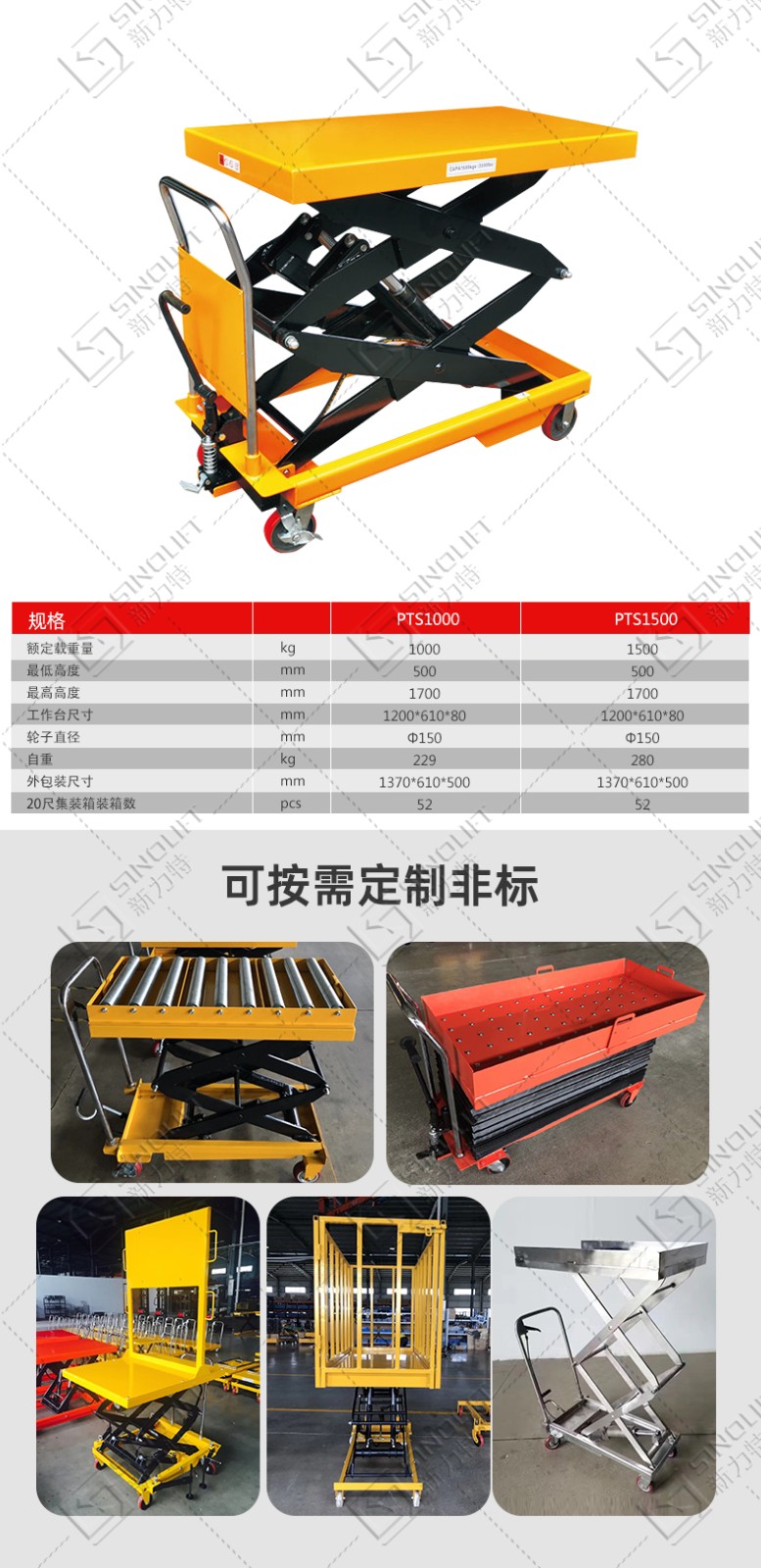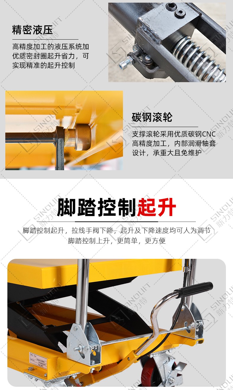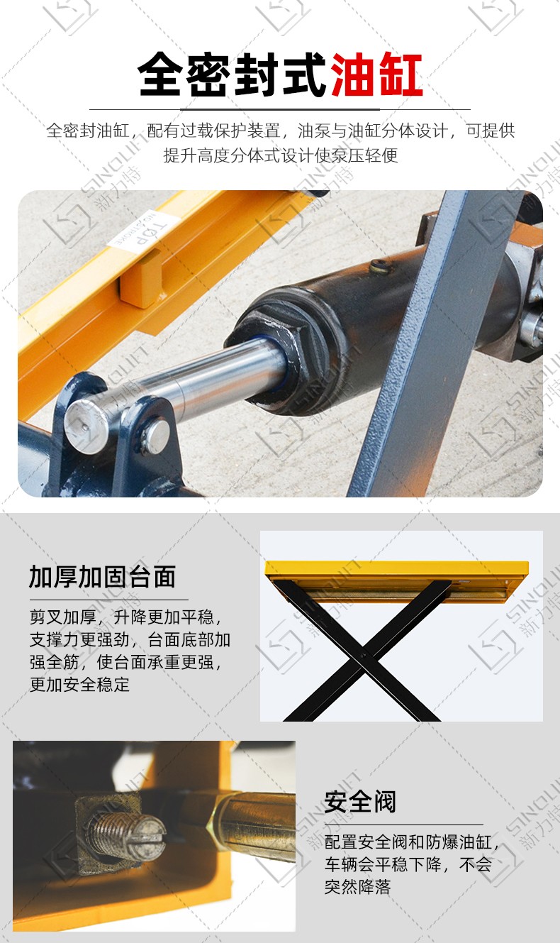 备注:分体泵,双油缸,脚踏泄压,双剪式平台车。