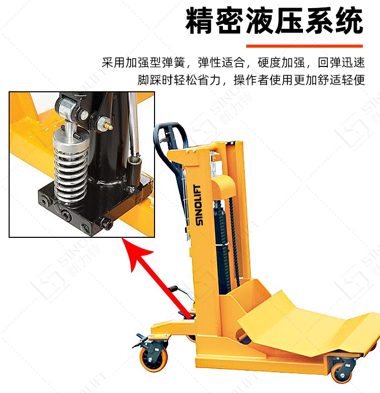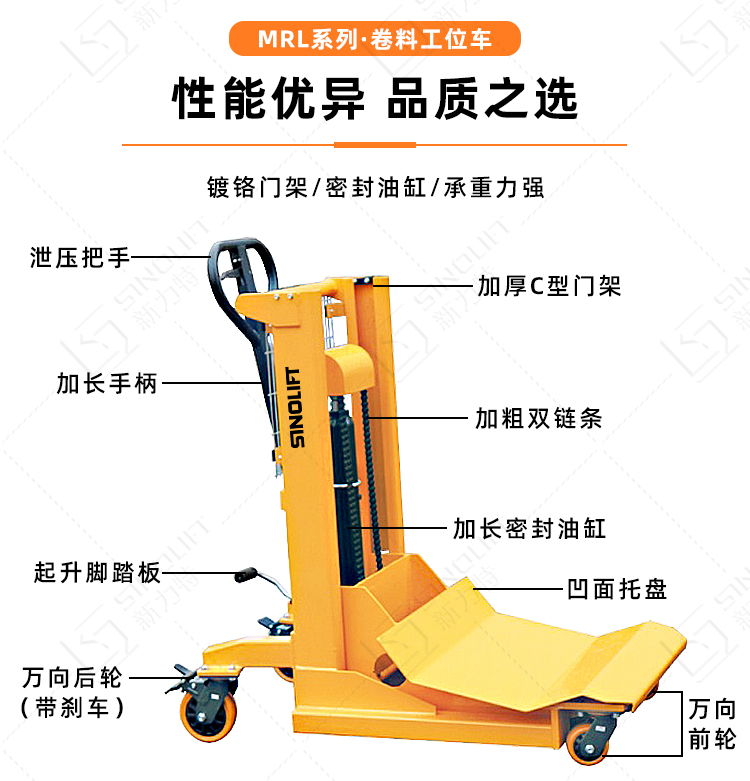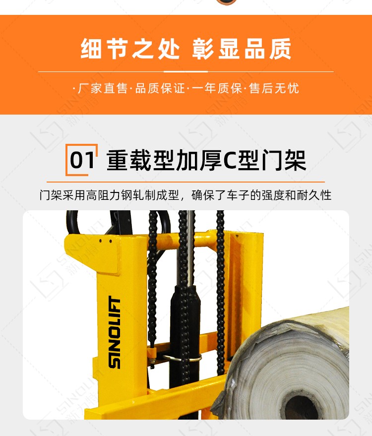 重载型加厚C形门架、凹面托盘、强劲加固双链条