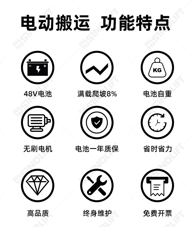 6.整车小巧灵活,转弯半径小,适用于箱式货车等狭窄通道作业;
