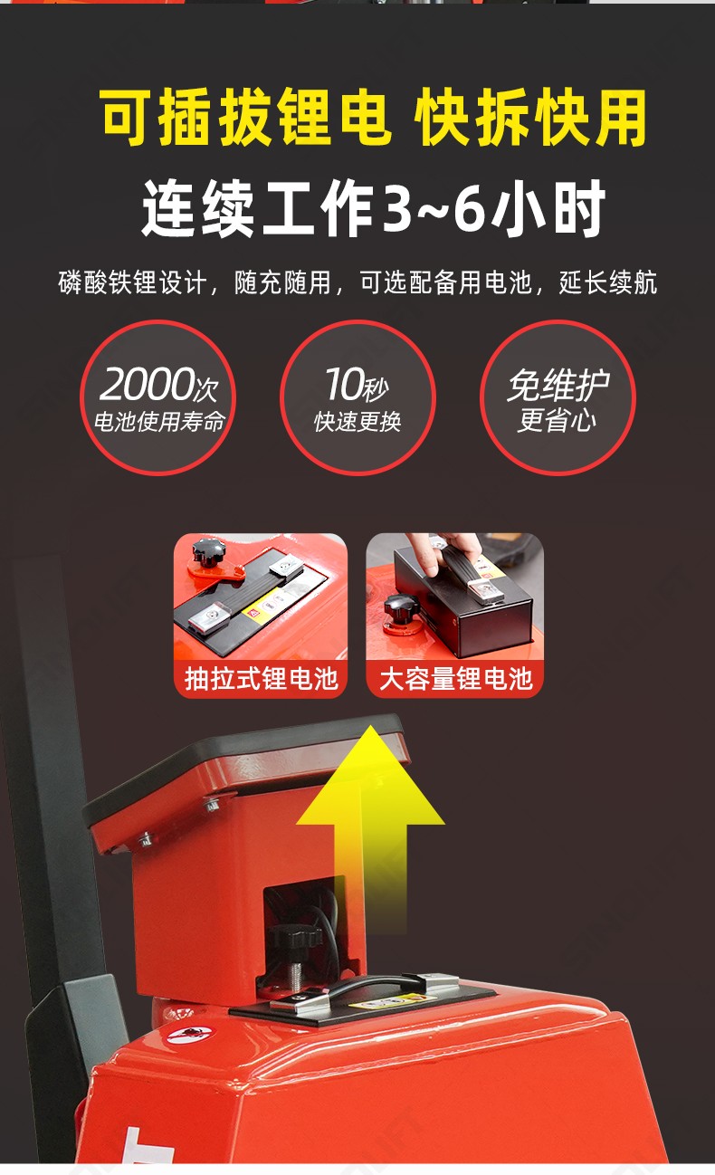标配磷酸铁锂电池,抽拉式电池方便更换,无需保养,48V/15Ah家用安全电压可用,低能耗,工作时间长,使用更稳定,更安全, 搬运无需省电