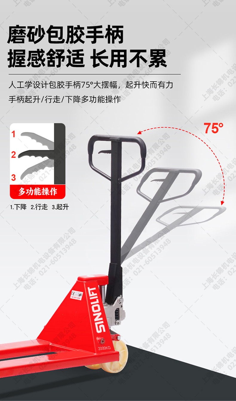 人体工学包胶手柄,三段式升降控制,操作轻便省力;