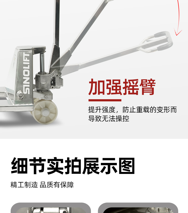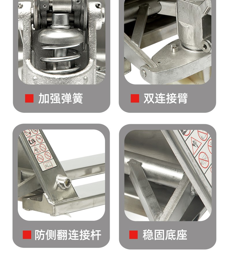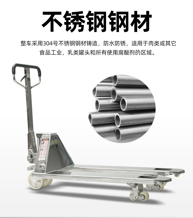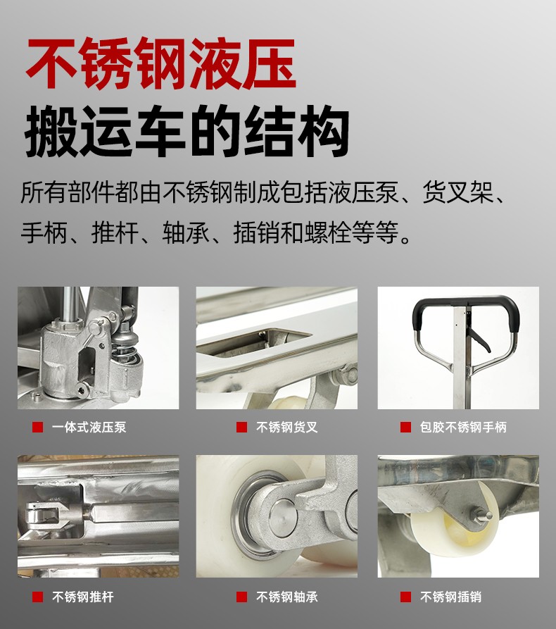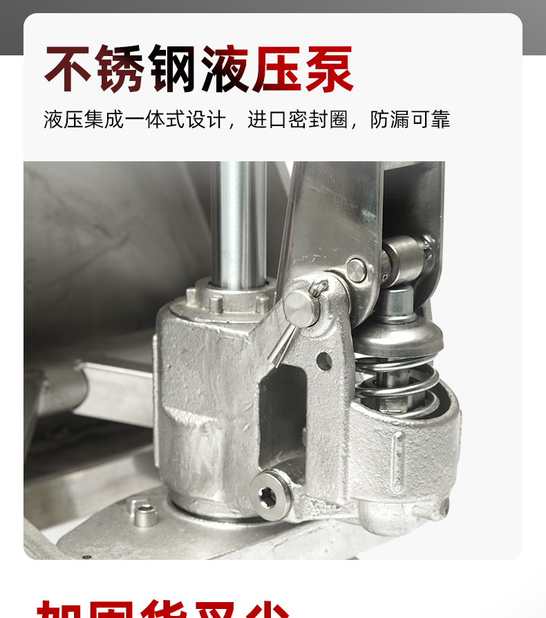 整车采用304号不锈钢钢材铸造,防水防锈,液压集成一体式设计,进口密封圈,防漏可靠;