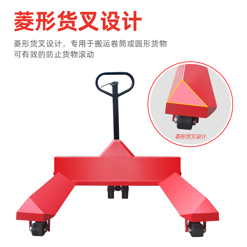 菱形货叉设计,用于搬运各种直径的圆柱形货物常用于造纸、印刷、包装、纺织、